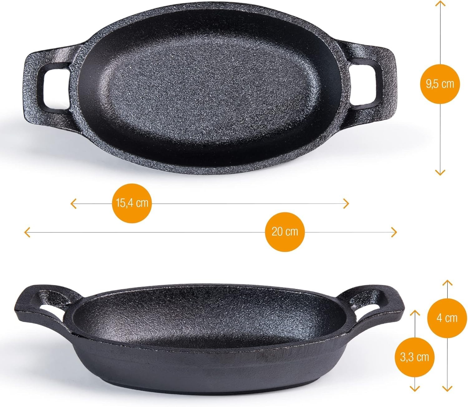 Amazy Servierpfännchen 6er Set Gusseisen mit Holzuntersetzern Grill Backofen